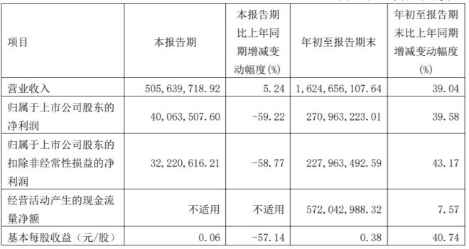 第三季度解百集團(tuán)實(shí)現(xiàn)營收5.06億元,同比增加5.24%;歸屬于上市公司股東的凈利潤0.4億元,同比下滑59.22%。