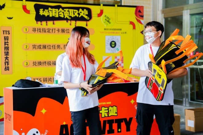 TTS中,TOP TOY聯(lián)動(dòng)字節(jié)跳動(dòng)、騰訊、阿里巴巴、愛(ài)奇藝、Bilibili等平臺(tái),更與抖音進(jìn)行獨(dú)家短視頻平臺(tái)合作,以互聯(lián)網(wǎng)思維凝聚線上線下資源,以高效率打法融合潮玩、潮藝、潮生活的概念。展會(huì)現(xiàn)場(chǎng)創(chuàng)新趣味玩法,以打卡拍照、視頻創(chuàng)作為主線,配合DIY積木收集、H5打卡頁(yè)面等,完成打卡任務(wù)即可獲取展會(huì)限定福袋。TTS打破了傳統(tǒng)展會(huì)紙質(zhì)蓋章等固有玩法,為用戶提供了更多維度、更多層級(jí)的線上、線下互動(dòng)體驗(yàn)與潮流藝術(shù)氛圍。
