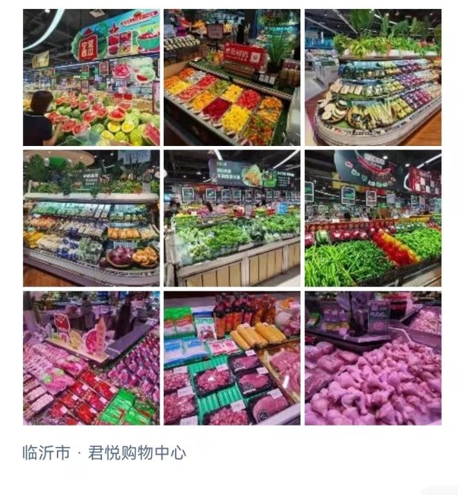 第一次發(fā)生在8月22日,我出差山東,由臨沂機場返杭州,去臨沂機場路上,路經(jīng)沂南,順道去君悅看看,看了賣場后我著實震撼:現(xiàn)場商品的豐富度,商品的呈現(xiàn)力,尤其是生鮮每一個細分品類都能看出匠心深耕的印跡,員工的工作表現(xiàn)熱情而自然,走在店里猶如進入美的商品世界,一種久違的驚嘆感涌上心頭。從君悅出來,我朋友圈一口氣發(fā)了三組九宮格照片,是由衷的贊嘆,更是自己發(fā)現(xiàn)新大陸的喜悅。