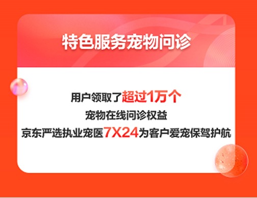 在10月31日晚8點(diǎn),開門紅開場(chǎng)僅9分鐘,京東健康寵物醫(yī)院上線的超過(guò)1萬(wàn)個(gè)寵物在線問(wèn)診服務(wù)權(quán)益被全部領(lǐng)取。在今年京東11.11期間,京東嚴(yán)選超過(guò)3000名執(zhí)業(yè)寵物醫(yī)師為消費(fèi)者提供7X24在線問(wèn)診服務(wù)。