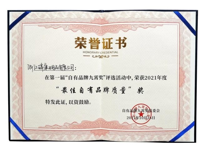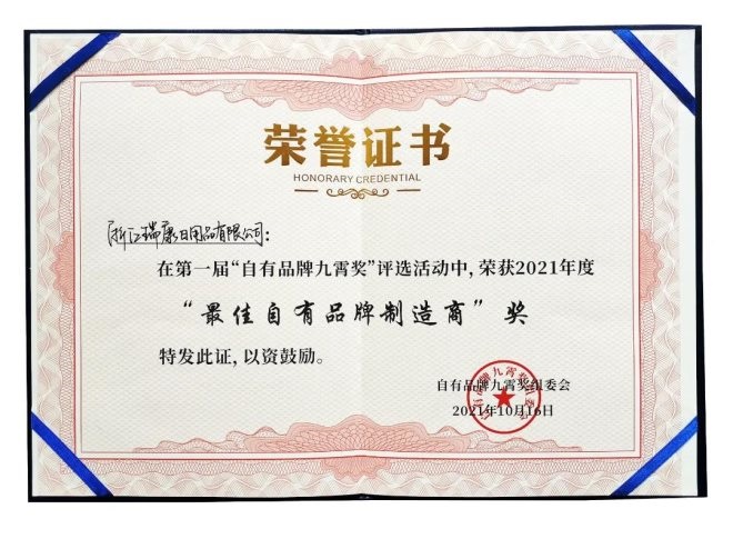 在剛剛完美落幕的第五屆全國(guó)自有品牌大會(huì)上,浙江瑞康日用品有限公司憑借高品質(zhì)的抗菌產(chǎn)品,榮獲“最佳自有品牌質(zhì)量”獎(jiǎng)和“最佳自有品牌制造商”獎(jiǎng)這兩大獎(jiǎng)項(xiàng)。