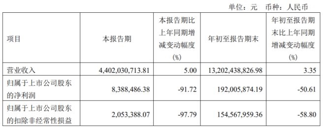 報(bào)告顯示,2021年第三季度,家家悅實(shí)現(xiàn)營(yíng)業(yè)收入44.02億元,同比增長(zhǎng)5%;歸屬于上市公司股東的凈利潤(rùn)838.85萬元,同比下降91.72%。