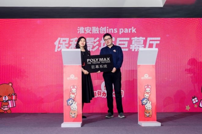 作為淮安融創(chuàng)ins park的主力品牌,保利影城在發(fā)布會上同步進行了保利影城“Poly Max”巨幕廳的授牌儀式。