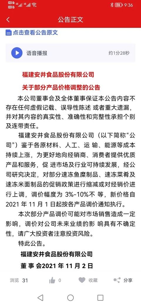 在李錦記宣布提價的同一天,速凍火鍋料制品龍頭企業(yè)安井食品發(fā)布公告稱,鑒于各原材料、人工、運輸、能源等成本持續(xù)上漲,公司決定對部分速凍魚糜制品、速凍菜肴及速凍米面制品的促銷政策進行縮減,或對經銷價進行上調,調價幅度為3%-10%不等,新價格自2021年11月1日起按各產品調價通知執(zhí)行。