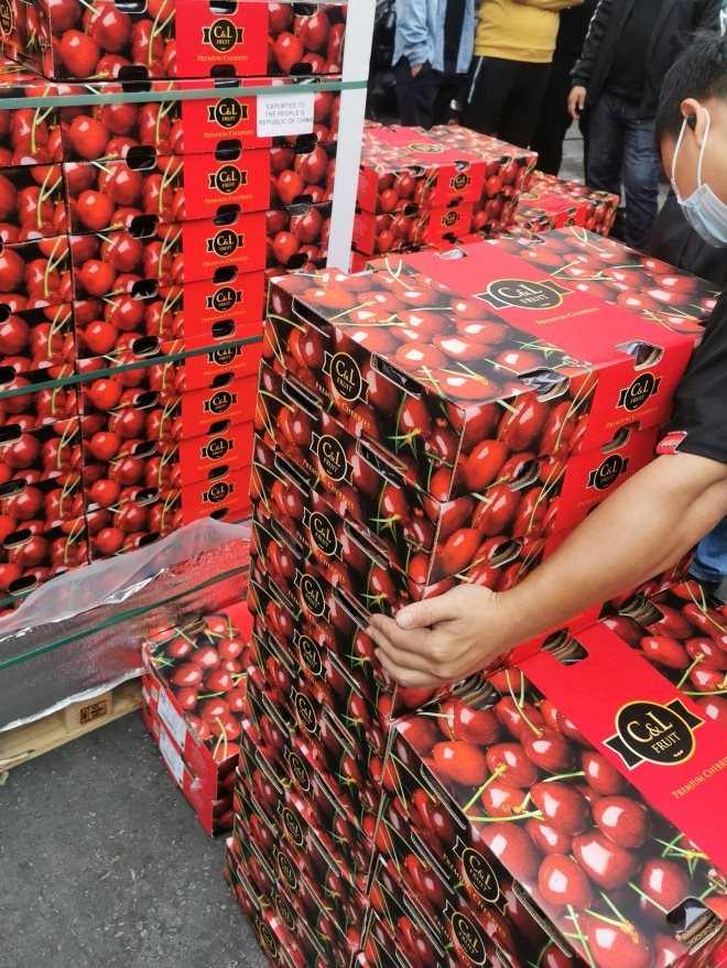 11月3日凌晨,一輛輛貨車駛?cè)霃V州市江南果蔬批發(fā)市場(chǎng)。“到了,終于到了! 這幾天,隨著智利車?yán)遄舆M(jìn)入新一年的產(chǎn)季,每一批空運(yùn)貨到達(dá)時(shí),市場(chǎng)里搶貨的人絡(luò)繹不絕。而這幾輛車上的座上賓,是2021/2022產(chǎn)季的首批智利車?yán)遄印盎始依杳鳌保≧oyal Dawn)。