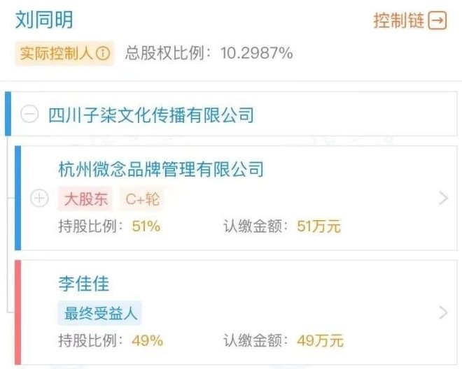 對于四川子柒文化這家公司,據(jù)企查查顯示,李子柒持有49%股份,微念持有51%股份,雙方完成了利益綁定。其中,李子柒負責內容創(chuàng)作與發(fā)布,微念公司負責運營與探索商業(yè)模式。也就是說,微念主要負責“李子柒”這一品牌的商業(yè)化部分,但李子柒一直未在微念持股,只持股了由杭州微念實際控制的四川子柒文化。