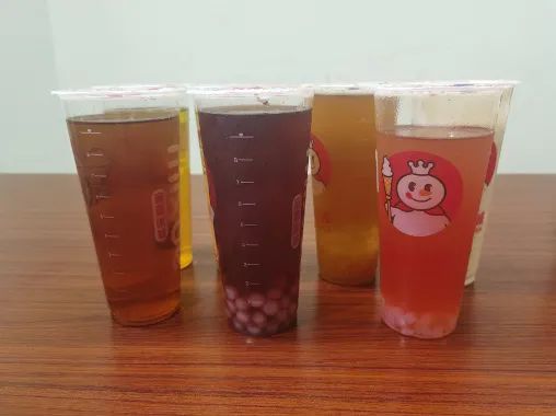 點(diǎn)評(píng):由于杯子不透明,我們撕開(kāi)才能看得清奶茶里面的材料。發(fā)現(xiàn)珍珠奶茶里的珍珠跟芋圓奶茶里面的芋圓是同一種東西,味道也是傳統(tǒng)的港式奶茶,跟芋圓奶茶味道一樣的,但價(jià)格相差了2塊錢(qián)。