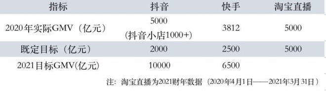 從2020年三家平臺的GMV來看,抖音(自有+引流)實現(xiàn)了5000億+的GMV、快手(自有+引流)達到3812億、淘寶直播則為5000億。整體來看,三家平臺GMV規(guī)模非常接近,且合計量已經(jīng)相當(dāng)于同期拼多多GMV的83%,而抖音、淘寶單平臺的GMV增量也已經(jīng)接近同期京東和拼多多的增量水平,頭部直播電商平臺的擴張非?捎^。