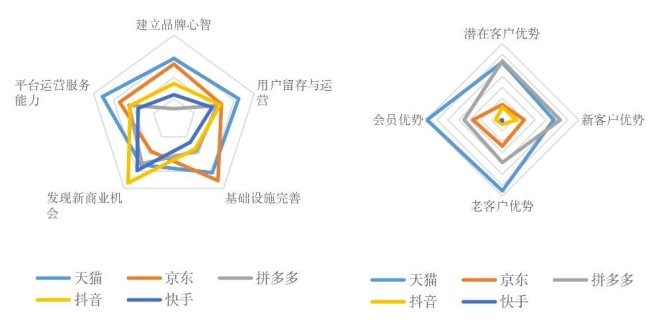 對于白牌企業(yè)而言,成本和進入門檻是其最為看重的因素,因此更便宜的獲客成本、更簡單的入駐規(guī)則更能吸引這些商家。2015年拼多多的崛起,為這類商家提供了廣闊的舞臺,也正是基于這種規(guī)模上的紅利,促成了近年來拼多多的高速擴張;對于對品牌曝光度、內(nèi)容運營更為看重、整體相對早期的商家而言,以抖音、快手為代表的直播電商基于強大的流量基礎(chǔ)、頻繁的品牌曝光和直觀的內(nèi)容種草,更受這類商家的青睞;而對于成熟商家,品牌商家而言,其對渠道需求也更加多元化,不僅包括了核心的賣貨訴求,與之相伴的品宣、復(fù)購、粉絲經(jīng)營、售后服務(wù)也同樣重要。因此,相比其他商家,他們更看重平臺的綜合解決方案能力,而天貓則是這類平臺青睞的平臺之一。