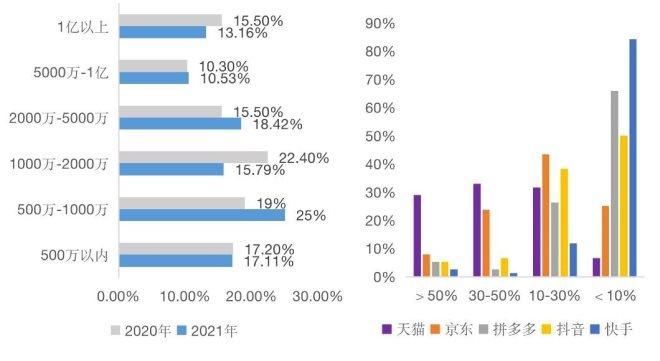 但是,進入2021年后,快抖相繼關(guān)閉了部分第三方鏈接入口,標(biāo)志著內(nèi)容平臺的電商閉環(huán)愈發(fā)完善。在此基礎(chǔ)之上,抖音將2021年自有電商的GMV定在了6000億,較2020年大幅增長252.94%,與此同時,除了快、抖、淘三家平臺外,京東、拼多多也加大了直播電商領(lǐng)域的投入力度,更多玩家的入局加上頭部平臺間快速布局和的激烈競爭,預(yù)示著直播電商領(lǐng)域的新較量已正式拉開帷幕。