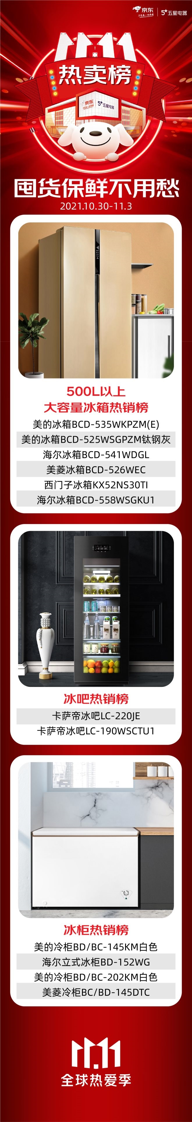 囤貨保鮮!京東五星電器11.11冷柜冰吧增長(zhǎng)5倍