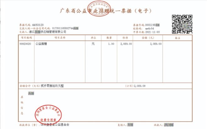 發(fā)布會(huì)上,阿里公益展示了雙11開(kāi)出的第一張公益票據(jù)。阿里最新推出的線上功能,將使愛(ài)心商家可以一鍵到底獲取由公益機(jī)構(gòu)依法開(kāi)具的捐款發(fā)票,切實(shí)降低商家參與公益行動(dòng)的成本。