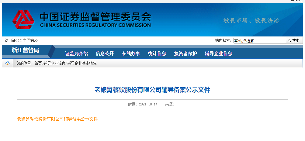 與老鄉(xiāng)雞步調一致,成立21年的中式快餐連鎖品牌——老娘舅也在沖刺IPO。今年10月,發(fā)家于浙江的老娘舅在浙江證監(jiān)局披露輔導備案公示文件,計劃在A股IPO。