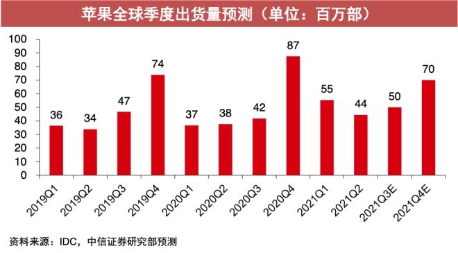 蘋果全球季度出貨量,圖源中信證券報(bào)告