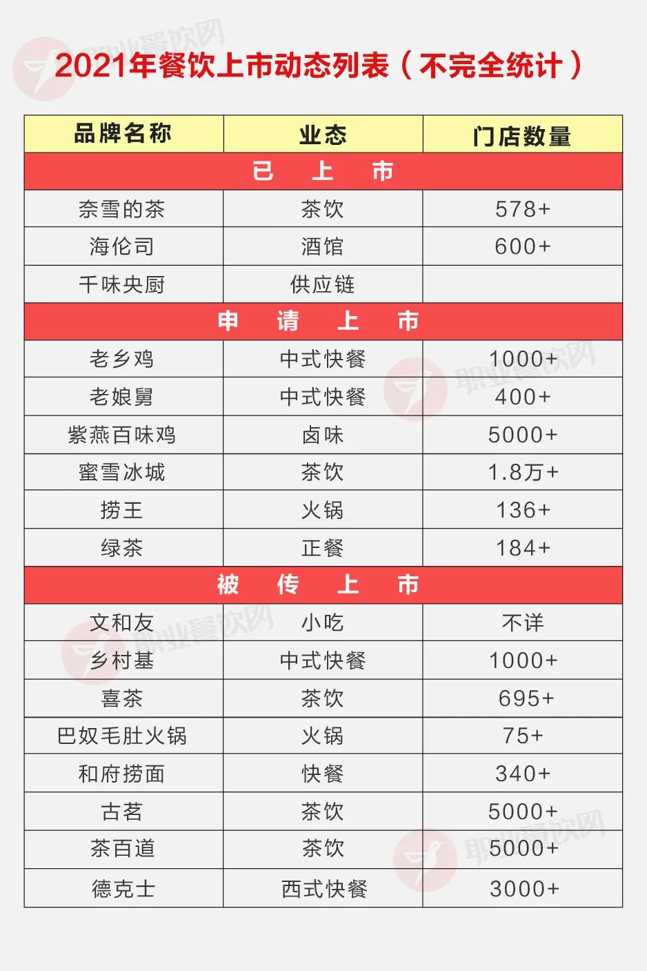 3、還有近10家黑馬餐企被傳準備上市