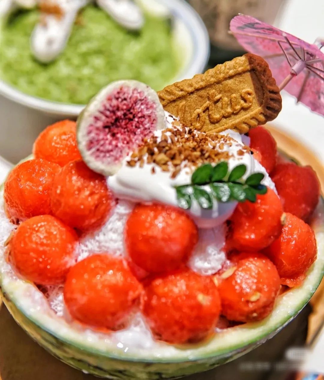 還有一款高頻出現(xiàn)的就是西瓜冰,是多家火鍋店常見的刨冰之一。
