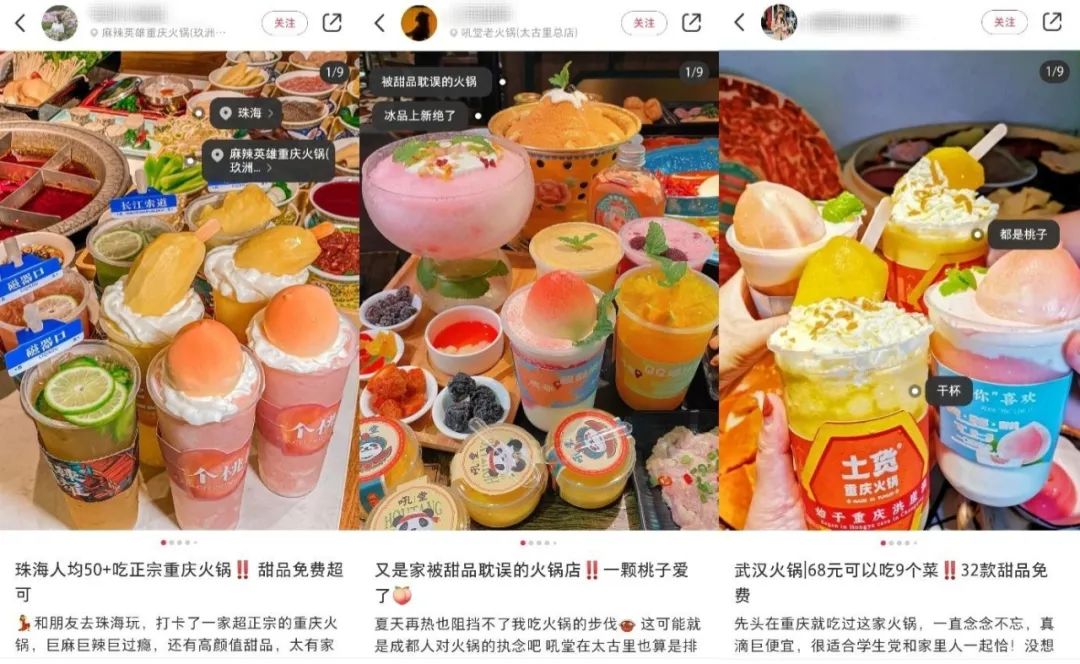 年輕人嗜甜,追求感官刺激,吃火鍋不但要辣得過癮,還要“冰火兩重天”。同時(shí),甜品拍照“容易出片”,也能給火鍋店帶來求之不得的傳播熱度。