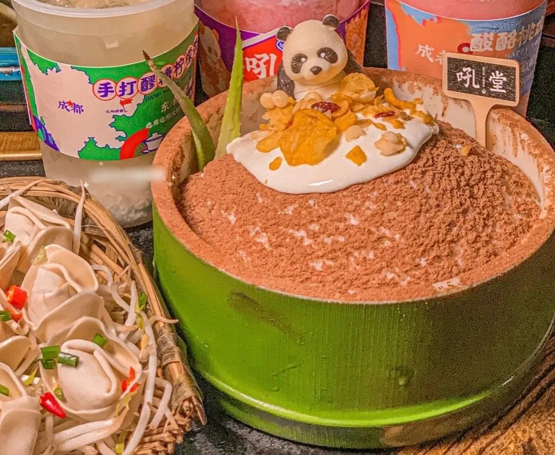 吼堂家的熊貓戀米蘇在造型上很有成都特色,直接將“大熊貓”搬進(jìn)竹碗里,再配上兩條竹葉,太成都了。