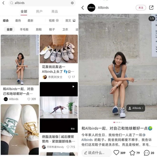 lululemon的核心是先進(jìn)入社區(qū)、瑜伽館等場景,讓教練們成為第一波客人,并且通過組織各種瑜伽活動和消費(fèi)者建立情感鏈接,形成低成本的“KOL營銷”。而Allbirds的推廣一部分來自于自來水,曾供職于Crocs的硅谷風(fēng)險投資人Brett Jackson就曾在推特上為其“帶貨”,聲稱在自己為期10天的西班牙旅程中,他穿著Allbirds鞋行走了27萬步。另一部分則也來自于于消費(fèi)者社區(qū)。