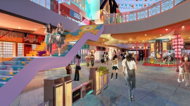 喵街的設(shè)計以大唐風、新國潮為主導(dǎo)方向,用古法新做的手法詮釋歷史的沉淀,又體現(xiàn)出現(xiàn)代時尚潮酷風格,符合當代年輕人的審美傾向。在整個空間注入漢唐文化記憶的同時,更結(jié)合了復(fù)古港臺風韻味以及酷炫時尚日韓特色,讓人身臨其境,感受獨樹一幟的異域風情和多樣化情境氛圍。對于街區(qū)氛圍亮化,項目統(tǒng)一運用霓虹彩燈形式,局部融入各地最具代表性傳統(tǒng)圖案、圖騰作為畫面差異化設(shè)計,用特色裝飾細節(jié),用DP點來打造喵街的商業(yè)氛圍。