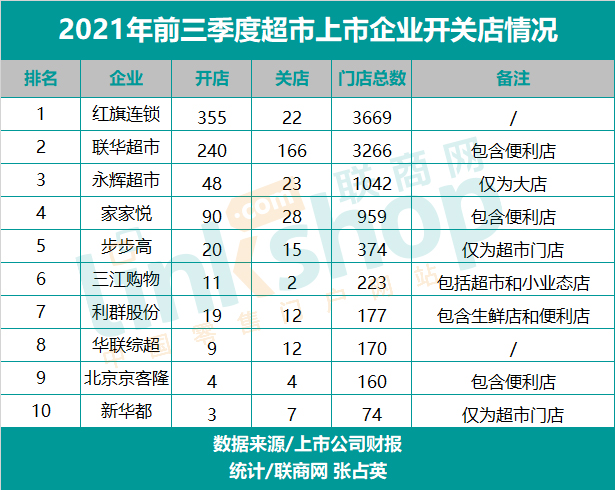 紅旗連鎖和聯(lián)華超市的門店拓展速度依舊兇猛。今年前三季度,紅旗連鎖新開門店355家, 聯(lián)華超市新開門店240家,家家悅也新增90家門店,不過三家都是中小業(yè)態(tài)門店居多。在關(guān)店方面,聯(lián)華超市關(guān)了166家門店,調(diào)整力度最大,家家悅也關(guān)閉了28家門店。