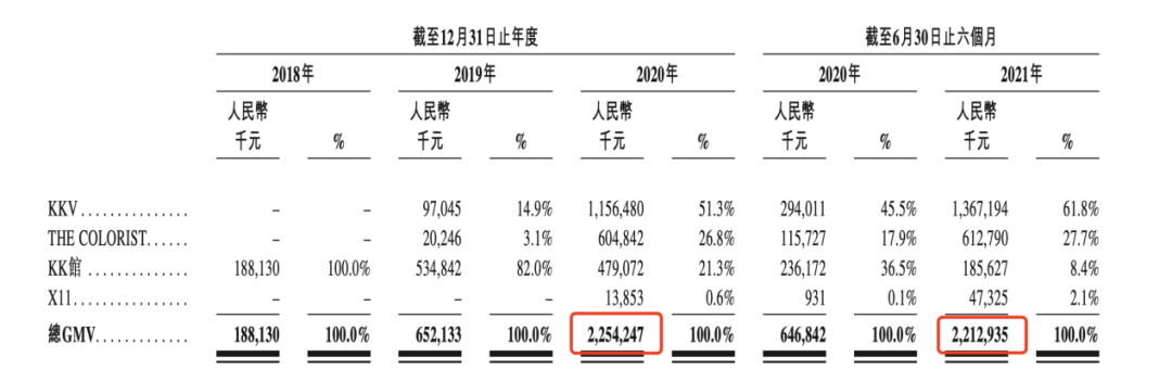 招股書顯示,KK集團(tuán)2018年-2020年的GMV總量分別為1.88億元、6.52億元、22.54億元;2021年上半年GMV就達(dá)到了22.13億元,已經(jīng)與2020年全年接近持平。KK集團(tuán)2018年至2020年的GMV復(fù)合年增長率高達(dá)246.2%,根據(jù)弗若斯特沙利文的報(bào)告,按照GMV來計(jì)算的話,KK是國內(nèi)增長最快的潮流零售商。