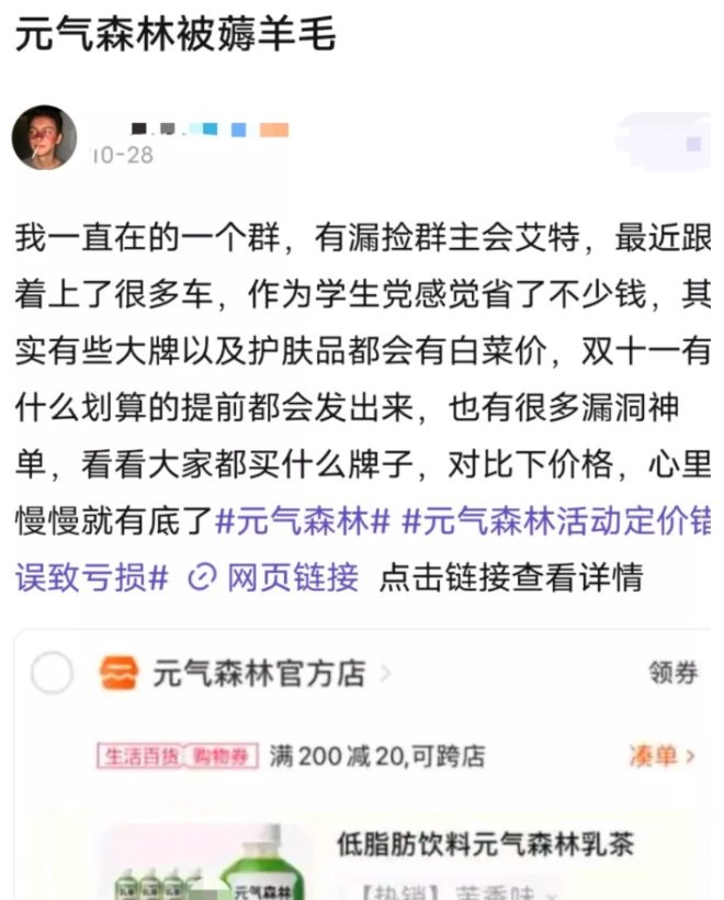 一位薅到了元?dú)馍盅蛎木W(wǎng)友告訴Tech星球,當(dāng)日元?dú)馍职l(fā)生了優(yōu)惠設(shè)置錯(cuò)誤的事情后,各大羊毛群開始傳播這類消息,然后不少群中的大佬利用手中的大量淘寶號進(jìn)行批次購買,有些人一口氣買了十幾箱。消息也是一傳十,十傳百,該網(wǎng)友認(rèn)為這么多單,不少是羊毛黨買的。