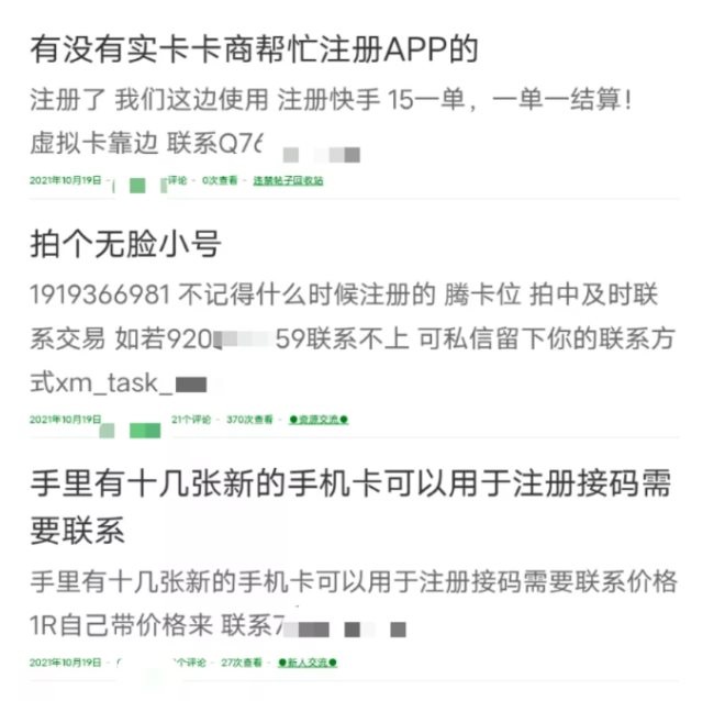 但如今由于監(jiān)管的嚴(yán)格,所以平臺運(yùn)營的成本也在提高,李新龍表示,現(xiàn)在誰家還留存有沒被封掉的手機(jī)號,基本上可以利用售卡狠狠的再賺一筆。另外,不少人在灰產(chǎn)論壇中開始出售還沒被停機(jī)的手機(jī)卡,注冊好的App賬號以及海外手機(jī)卡等,這也是做好跑路的前奏。