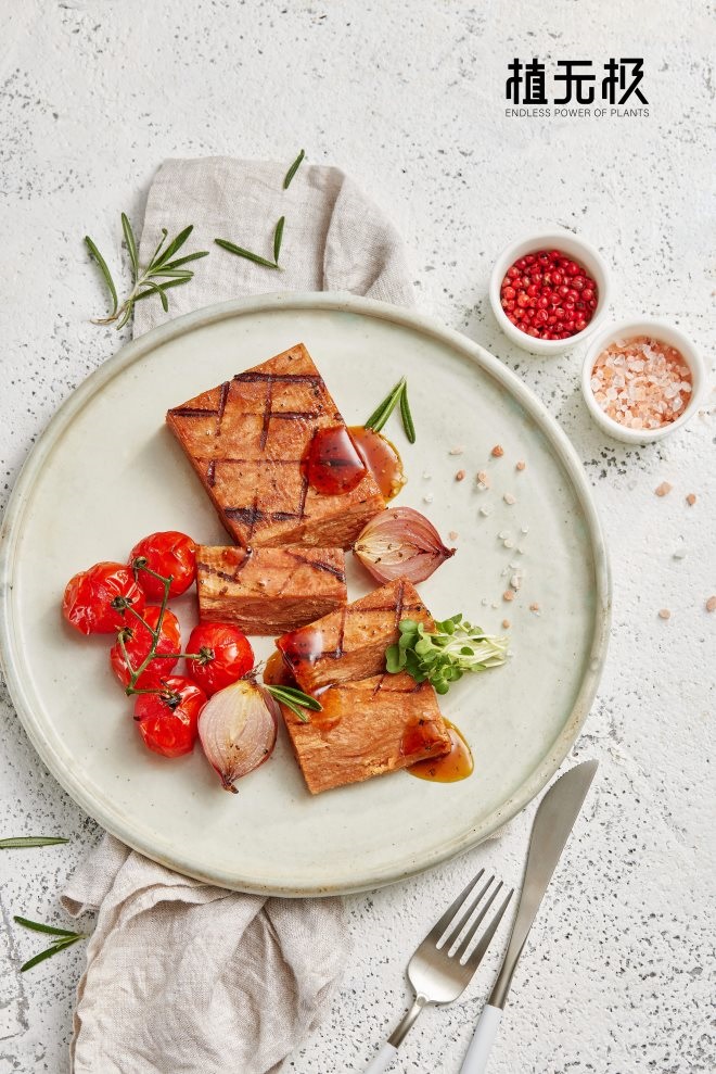 好吃、健康和大塊是植無極“大塊植物牛肉”的三大關(guān)鍵詞:植物牛肉逼真還原牛肉的肌肉紋理、風(fēng)味與口感;成份為純植物,配方包含大豆、豌豆、植物油和調(diào)味料等,零膽固醇且營養(yǎng)均衡;一整塊的植物牛肉,可分切成片、塊、條、丁等多種形態(tài)。
