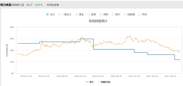 目前,格力電器還處于渠道改革進(jìn)行時(shí)中,雖然布局線上、整頓線下有一定成效,比如今年前三季度庫(kù)存增加有部分是因?yàn)閷?duì)渠道壓貨減少,但公司整體對(duì)其龐大經(jīng)銷商體系(27家銷售公司,超3萬(wàn)家專賣店)的“刮骨療傷”還不徹底,業(yè)績(jī)釋放也沒(méi)有出現(xiàn),這從機(jī)構(gòu)對(duì)其的持倉(cāng)變化上或可“一窺端倪”。