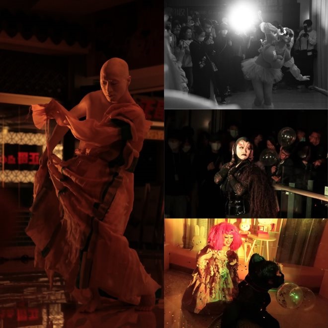 該活動(dòng)設(shè)《東西南》環(huán)境舞蹈、《肉體的虛像》身體現(xiàn)場(chǎng)、《Annata:not a real drag show》實(shí)驗(yàn)戲劇三場(chǎng)節(jié)目。當(dāng)晚,近200位年輕顧客參加了這場(chǎng)零距離、高參與、360°沉浸式的藝術(shù)體驗(yàn),被隨機(jī)選中與表演者互動(dòng)、飆戲,熱情高漲,并給予了高度評(píng)價(jià)。
