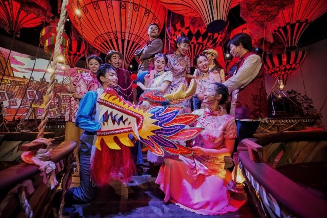 《玩味探險家》是一場關(guān)于探索、旅行與美食的奇幻狂想,由具有11年制作經(jīng)驗的英國沉浸式美食互動劇領(lǐng)頭者Gingerline創(chuàng)作,由英國文化創(chuàng)意公司W(wǎng)E Culture Connect(WECC)版權(quán)運營。該劇早在倫敦展演時,就成為一票難求的爆款劇目。如今登陸亞洲,深度還原精美制作的同時,也讓魔都的食客足不出“滬”就能乘坐“熱氣球”,周游“亞歐”。