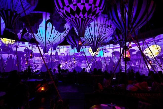 這部作品單場觀眾控制在130人,時長90分鐘,觀眾們化身乘坐“熱氣球”游遍全球的“探險家”,在性格各異的“大風(fēng)兄弟”吹動下環(huán)游世界,環(huán)形巨幕帶來的多媒體效果、歌舞表演、肢體劇、默劇和世界美食給“探險家”們帶來身臨其境的沉浸感和互動感。