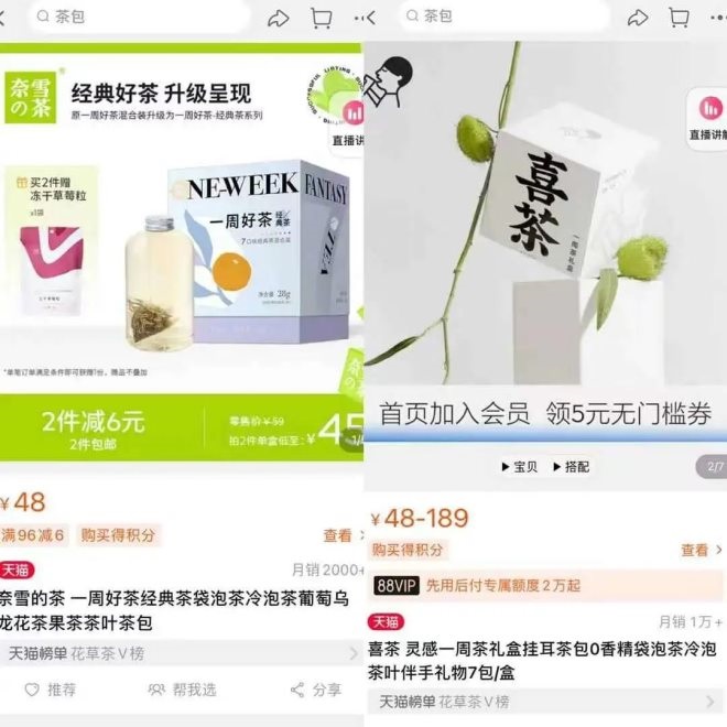去年疫情之后,從喜茶奈雪到樂樂茶等一批頭部奶茶品牌開始進駐天貓,但當時的思路更多是利用平臺來觸達消費者,所以售賣儲值卡和代金券是主要產(chǎn)品。而品牌的每個動作背后,除了內(nèi)因的選擇之外,也離不開供應鏈和政策端的變化。