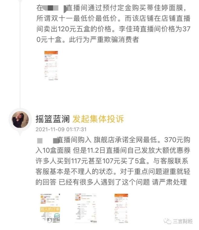 值得注意的是,有數(shù)名消費(fèi)者透露自己是通過(guò)某知名主播的直播間購(gòu)買(mǎi)的蒂佳婷面膜,當(dāng)時(shí)旗艦店承諾全網(wǎng)最低,但是在支付尾款過(guò)后便立刻降價(jià)銷售。