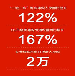 數(shù)據(jù)顯示,在“一城一天一店”活動的帶動下,雙十一當(dāng)天12小時,蘇寧易購到店體驗(yàn)人次同比提升122%。蘇寧易購在雙十一期間推出的多項(xiàng)用戶服務(wù)也受到消費(fèi)者青睞,其中O2O金牌導(dǎo)購員預(yù)約量同比增長167%,長輩導(dǎo)購員半日接待人次超2萬。