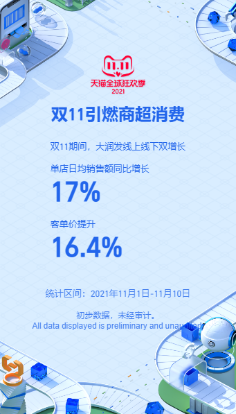 11月1日-10日,大潤(rùn)發(fā)線(xiàn)上線(xiàn)下雙增長(zhǎng),單店日均銷(xiāo)售額同比增長(zhǎng)17%,客單價(jià)提升16.4%。