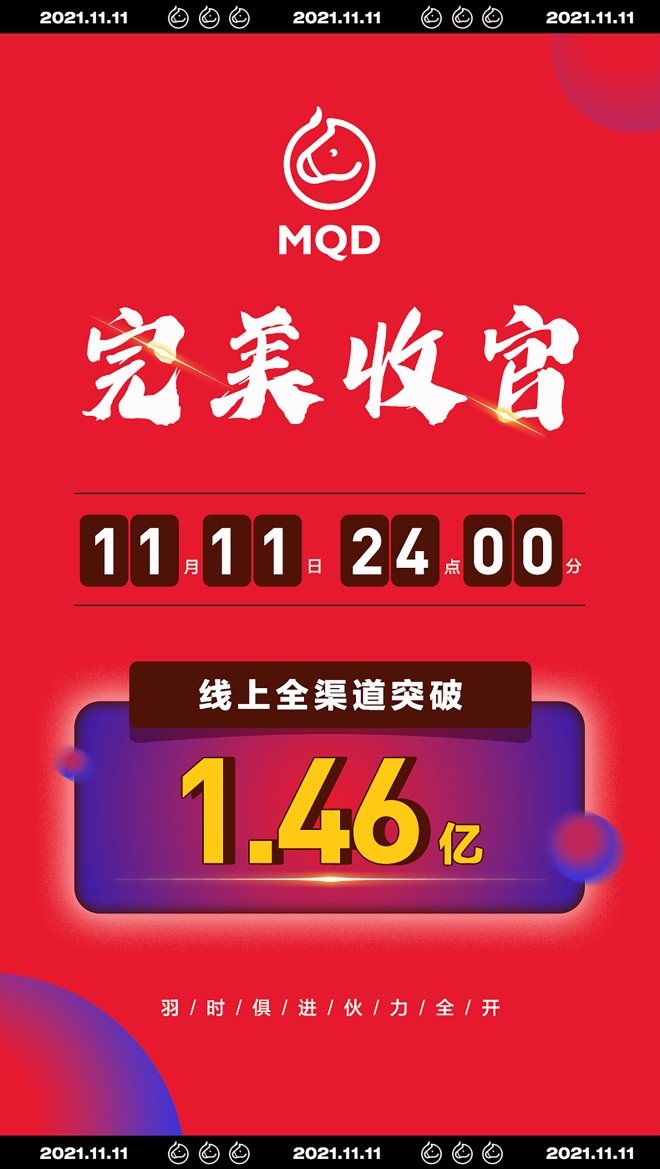 收官!MQD電商線上雙十一業(yè)績突破1.46億