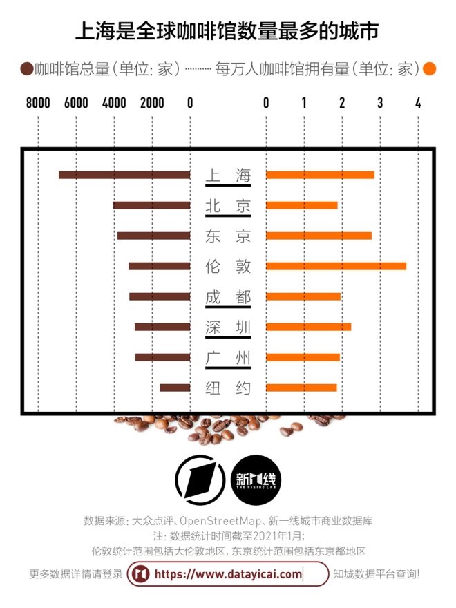 上海已經(jīng)成為全球咖啡館數(shù)量最多的城市,這個(gè)數(shù)字是6913。
