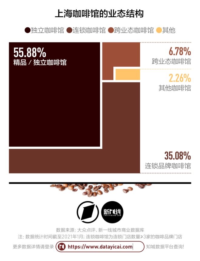 如今星巴克、Costa一類的連鎖品牌咖啡館在上海只占35.08%的比例,剩下有55.88%是精品咖啡館和獨(dú)立咖啡館。