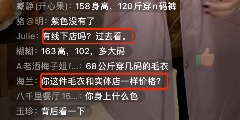 最近,徐星想給媽媽買一件羽絨服,便在一個(gè)羽絨服品牌門店的直播間里留言,主播一一認(rèn)真的上身試穿、介紹面料、版型和針腳走向,甚至還問他媽媽的喜好,稱可以去線下試穿,門店有貨。