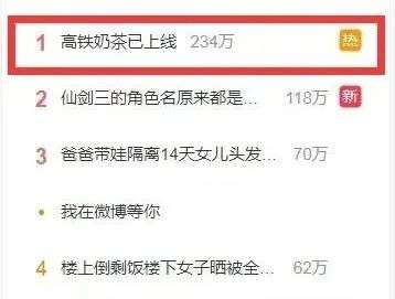 重點是,昨日,“高鐵奶茶上線了”喜提熱搜第一。