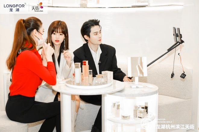 眾所周知,龍湖杭州濱江天街不僅位于杭州經(jīng)濟(jì)的核心腹地,也身處電商網(wǎng)紅經(jīng)濟(jì)的活躍之地,而濱江天街也正在嘗試?yán)眠@一優(yōu)勢(shì)塑造自身更加鮮明的定位格調(diào)。11月10日DIOR開(kāi)業(yè)當(dāng)天,濱江天街與兩大MCN巨頭——無(wú)憂傳媒、嘉尚傳媒合作開(kāi)展了兩場(chǎng)聯(lián)名直播。達(dá)人探店打卡,現(xiàn)場(chǎng)試妝試色,教直播間里的顧客如何挑選適合自己的護(hù)膚品和彩妝,教顧客如何用最劃算的價(jià)格買到自己喜歡的產(chǎn)品。濱江天街與MCN機(jī)構(gòu)聯(lián)合打響杭城熱點(diǎn)話題,再加上品牌流量與互聯(lián)網(wǎng)流量加持,將多渠道流量跨界整合,這對(duì)于以線下實(shí)體為主導(dǎo)流量的購(gòu)物中心來(lái)說(shuō),算得上是一次成績(jī)不錯(cuò)的突破和嘗試。