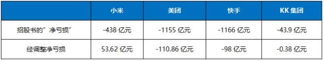 (數(shù)據(jù)來(lái)源:小米、美團(tuán)、快手、KK集團(tuán)招股書)