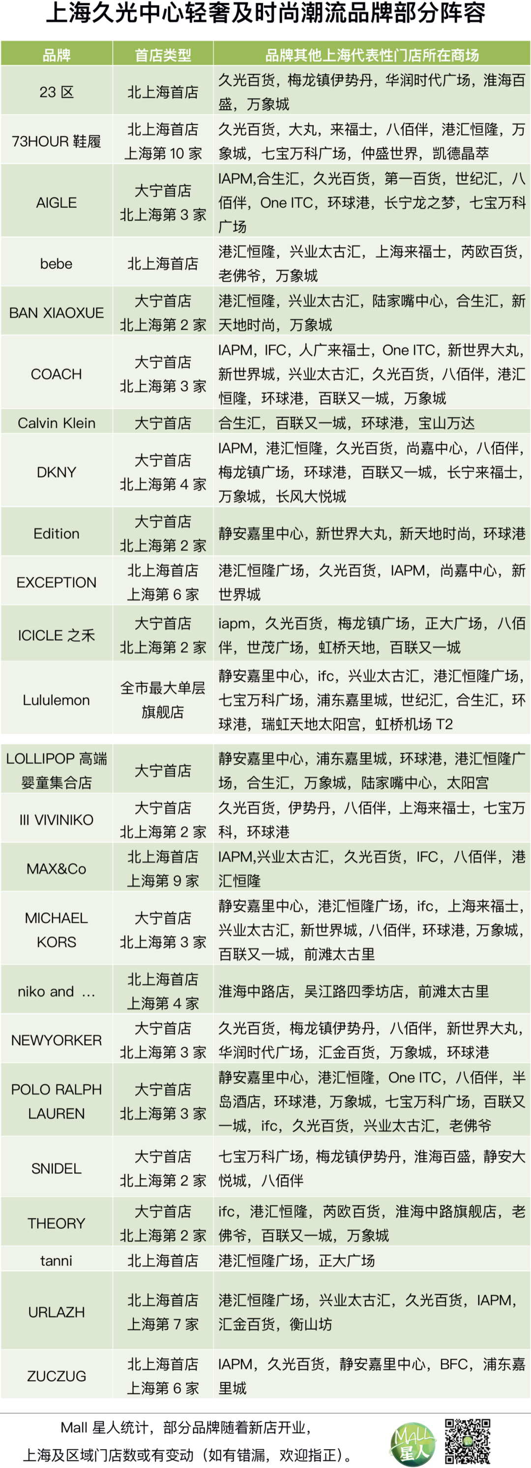 就已曝光的品牌陣容來看,上海久光中心的國際高級化妝品與輕奢與潮流服飾(不含重奢)品牌,是今年所有新場中最齊備的。
