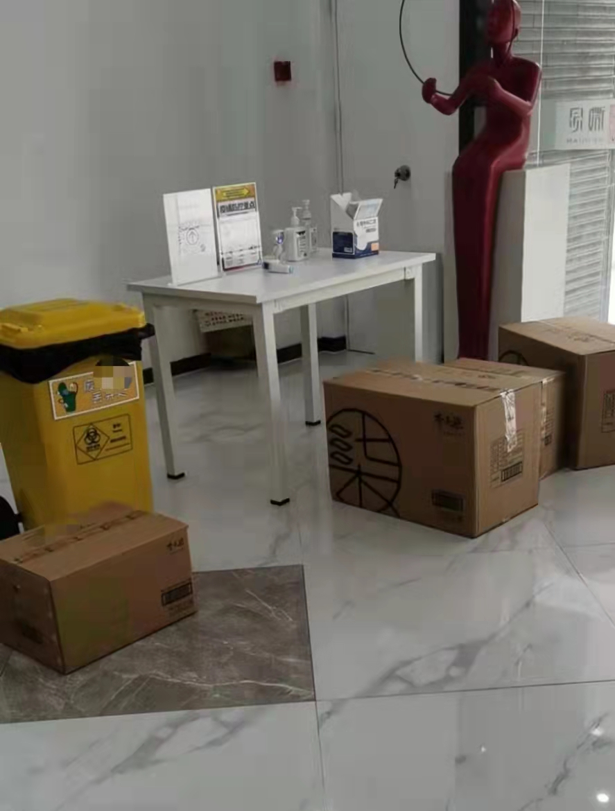 來(lái)到墻體側(cè)面印有微念logo的主樓,剛進(jìn)公司,便發(fā)現(xiàn)門口堆放著數(shù)箱印有“李子柒”logo的貨品。包裝上寫(xiě)有員工名字,但未見(jiàn)快遞單。隨后探訪中,筆者也遇到了正用板車將印有“李子柒”logo的貨品從后門運(yùn)進(jìn)辦公樓的微念員工。