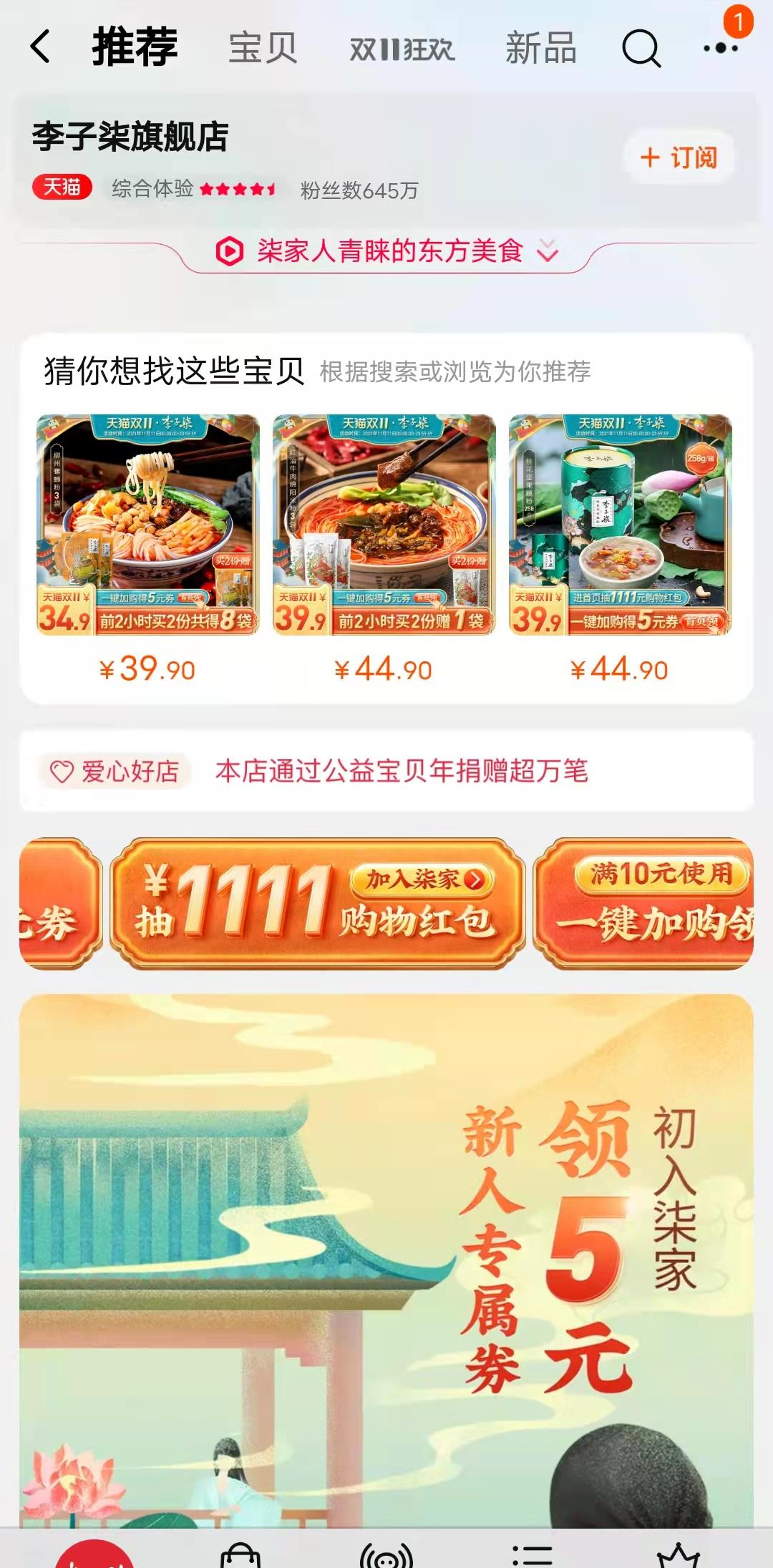 李子柒天貓旗艦店撤下置頂視頻
