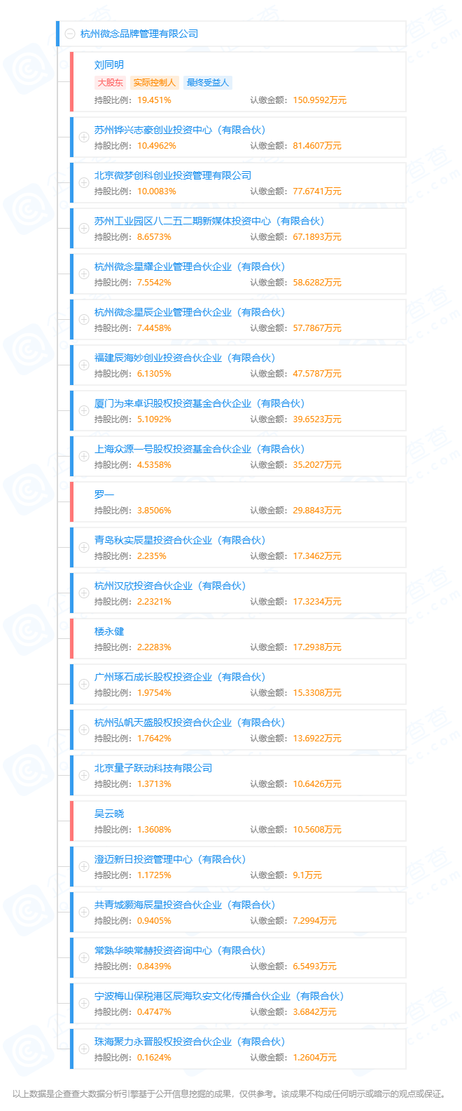 杭州微念股權(quán)結(jié)構(gòu)圖,來(lái)源:企查查