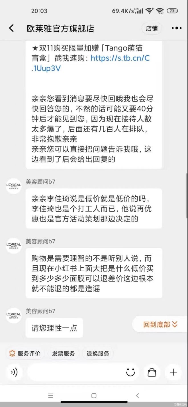 歐萊雅客服回應(yīng)退差價(jià):李佳琦也是打工人 差價(jià)根本不能退