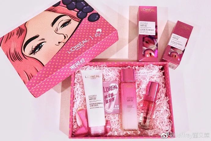 2018年,喜茶和巴黎歐萊雅聯(lián)名推出葡萄籽歐萊雅能量彈禮盒設(shè)計,結(jié)合了喜茶熱銷飲品多肉葡萄飲和歐萊雅葡萄籽系列,進行了新的套盒設(shè)計。同時,還共同推出了擁有三款色號的口紅禮盒,讓“滿杯紅柚”、“芝芝桃桃”和“莓果女孩”三款“喜茶色”正式出圈。